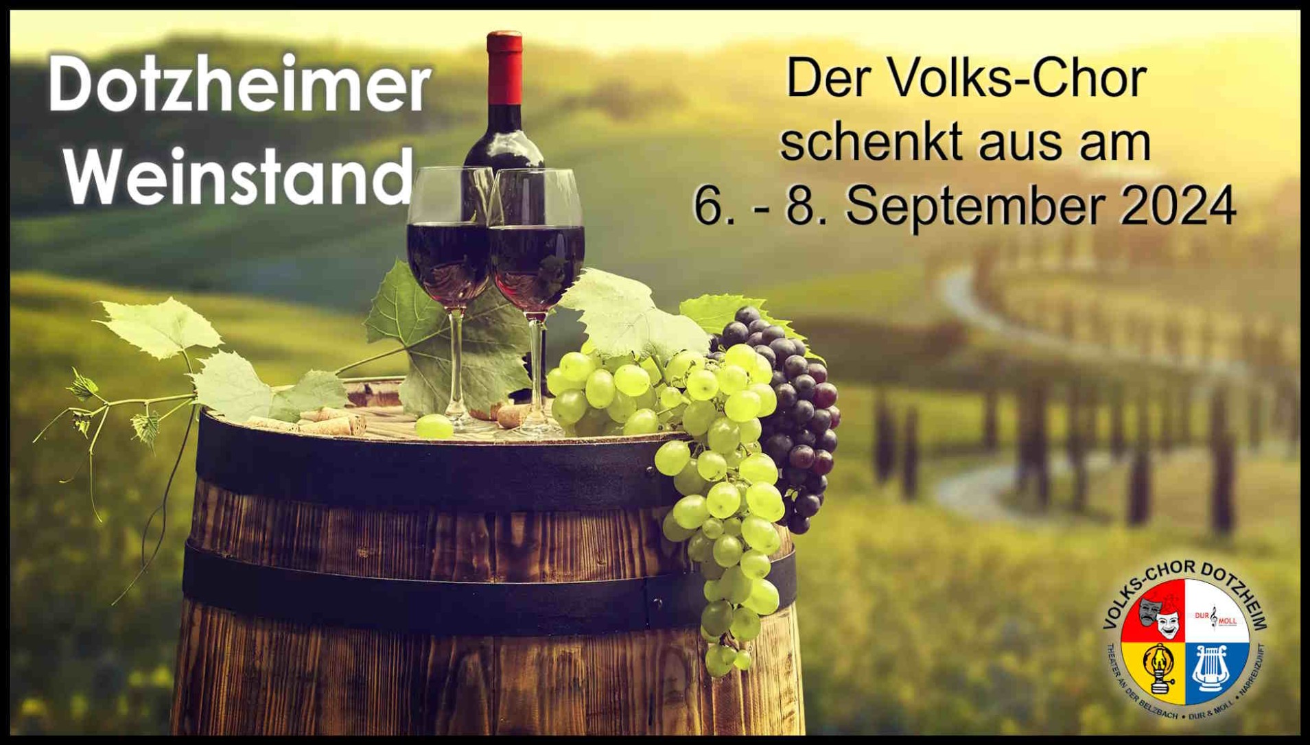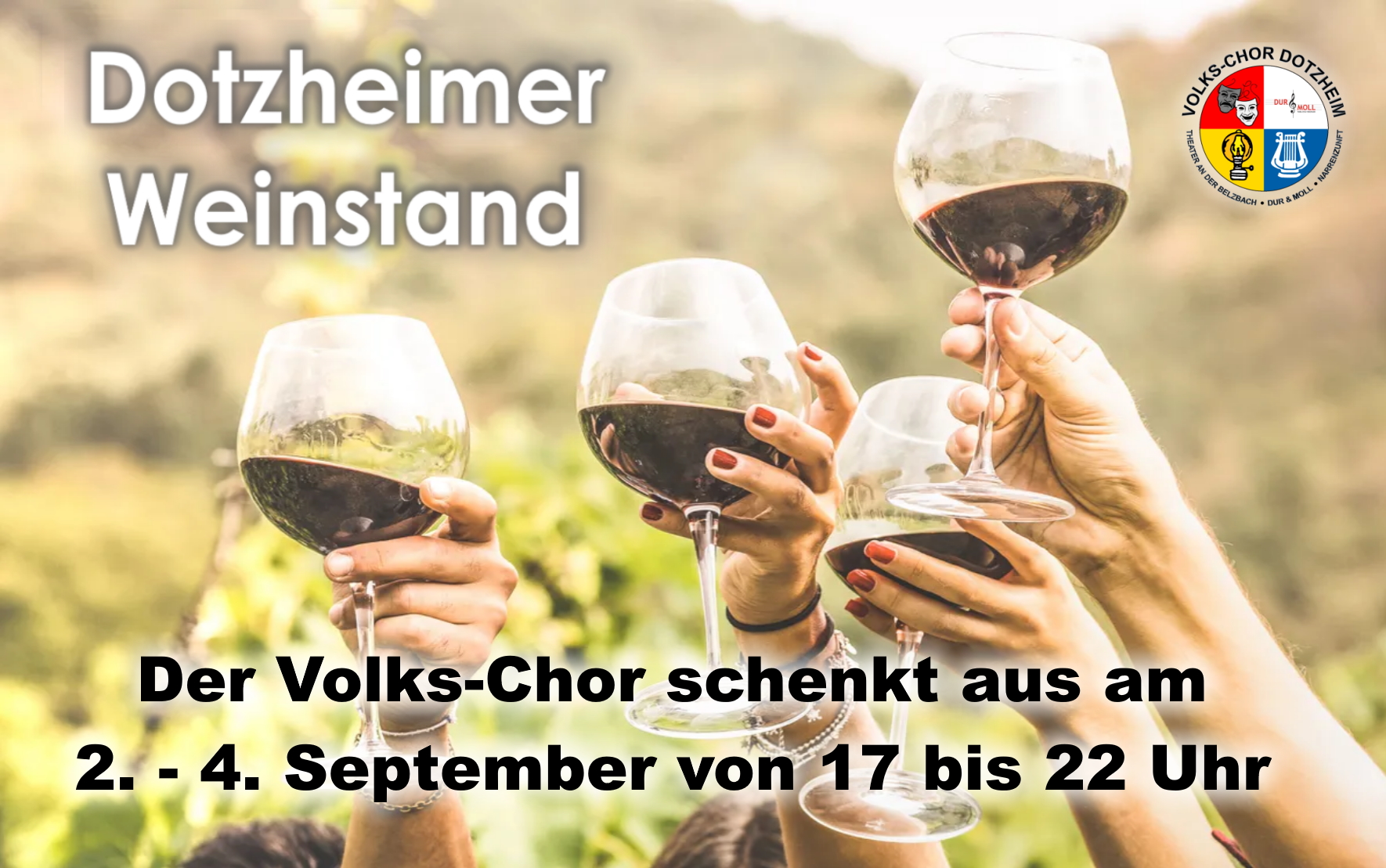 Vom 04.09.- 06.09.2020 bewirtet der Chor an allen 3 Tagen den Dotzheimer Weinstand! Freitag bis Sonntag von 17:00-22:00 Uhr.